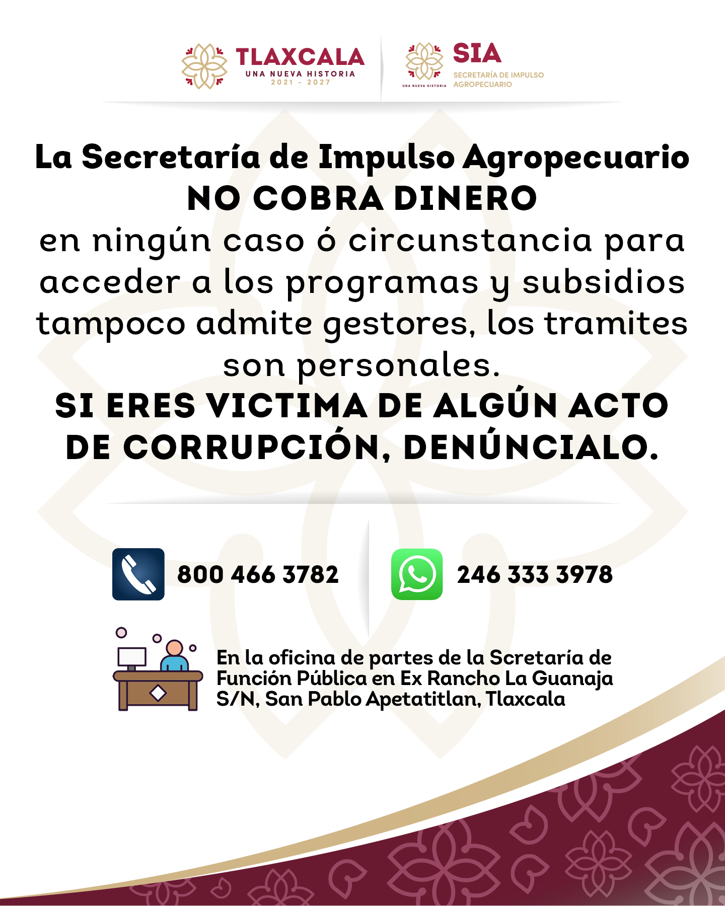 La Secretaría de Impulso Agropecuario da la más cordial bienvenida a todas las personas productoras agrícolas, ganaderas y acuícolas del estado de Tlaxcala, interesadas en invertir en el campo tlaxcalteca.